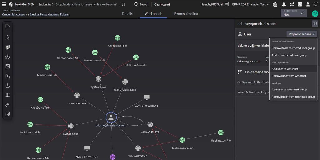 Con visibilidad unificada de la nube, los endpoints y las identidades, correlacione y detecte los ataques entre dominios para impedir que los adversarios se desplacen lateralmente por sus entornos.